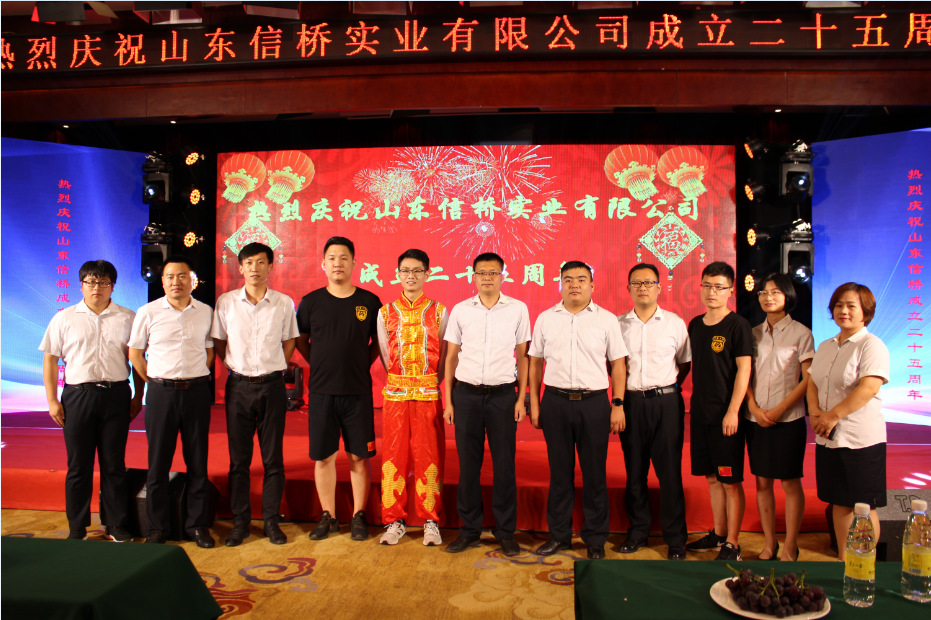 歲月如歌,風(fēng)霜如畫,二十五年彈指一揮間,山東信橋?qū)崢I(yè)有限公司(以下簡稱山東信橋)迎來了二十五周年的生日。二十五年來,信橋人在激烈的市場競爭中奮力拼搏、砥礪前行,接受了市場風(fēng)風(fēng)雨雨的洗禮,取得了累累碩果。為了慶祝這一特殊的日子,2019年8月8日,以“感恩同行,共贏未來”為主題的山東信橋二十五周年慶典活動(dòng)在帝苑酒店舉行。